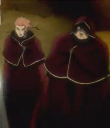Dug appears to be the largest member of the Baskerville Clan, acting as a muscular behemoth who towers over regular full-grown men. Dug wears the Baskervilles' signature crimson robe that has a small golden triangle-shaped pendant with detailed etchings pinned to the neck-line of his hood (a personal addition to his attire). Unlike Lottie, Fang, Lily and Noise, Dug has yet to be shown with his hood down, and therefore his hair color, style and length are left unknown for now. Dug has a square jaw line and prominent nose with nearly perfect circular eyes that have snake-like pupils (however the color of his eyes is unknown). As well as having an intimidating profile, Dug also has a tattoo symbolizing The Devil on the right side of his face in crimson that encircles his right eye and covers his cheek, which he had gotten in order to make Lily feel more at home because she has one herself.