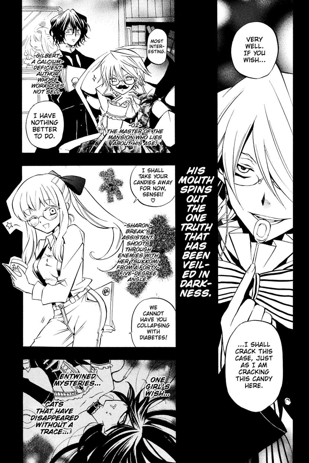 Having returned from the infernal Abyss only to find his whole world changed, young "sinner" Oz Vessalius embarks on an attempt at normalcy after being reunited with his best friend and valet, Gilbert, whom he had presumed dead. But during a trip into town with Gil and Alice, an unexpected encounter leads Oz down memory lane... For Oz, however, the path is one covered with the most menacing of thorns. And lying in wait to assail him there... The baleful eye of his father and the echoes of cursed words Oz would much rather forget...