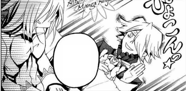 The flashback ends and Gil, remembering all of that, goes into a state of shock. He however, quickly changes the subject, flicking Oz's head and asking him whether he was actually okay, as he had been acting strange when they met with The Intention of the Abyss. Oz again replies that he's fine but admits that the white rabbit had scared him. At that same moment, Alice wakes up only to see Break's smiling figure on the floor. Needless to say it soon got very loud and in her repeated attempts to destroy him, she obliterates the room, much to Gil's dismay. As things simmer down, Break says that he came by to talk to Oz, and motions for Gil make tea. Gil initially refuses, but after some "persuasion", he unwillingly makes some coffee.