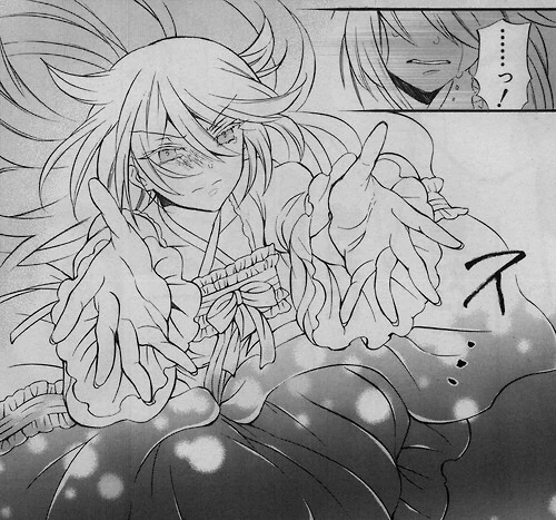 After revealing herself as Alice the B-Rabbit, Jack is surprised to see Alice before him once again. Alice tells Jack that she could never forgive him for what he had done, ever, drawing Oz's scythe and explaining how she really wanted to dismember Jack where he stands, but admits that there was something more pressing to be taken care now. Alice called out for her sister. The Intention of the Abyss extends her arms and tells Alice that in the end she couldn't accomplish it, but with this she would be able to prevent herself from being able to hurt anyone anymore.