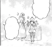 Returning to the party, the group is greeted by Vincent and Ada - happy to see that their brothers have finally returned. When Vincent asks Gilbert where he'd gone, Ada giggles and points out that Vincent has some cream by his mouth. Although Vincent denies that what Ada says is true, his denial only makes Ada laugh more and more as the two continue to eat. Stunned, Oz asks if it's okay, knowing that Ada will be swept away by Vincent at the rate their going. A shaken Gilbert questions what Oz means, initially stating that he doesn't care, before admitting that so long as Oz is okay with Ada and Vincent's relationship, then he is too. With this Oz cries out because he doesn't like it himself and so he doesn't know what to think.
