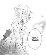 Just then, Phillipe waves to Oz, as do Lottie, Fang, Dug and Lily - who thank him for inviting them to the tea party. Turning his attention elsewhere, Oz is ecstatic to see Break, Sharon and Reim. As Break bids Oz a good morning, Sharon advises him not to eat an entire cake himself, which merely makes Break laugh as he teasingly tells Sharon not to pout. Both Sharon and Reim are happy to see Oz and rejoice after having not seen him for so long, however before Oz can envelop himself in the warmth of his friend, he sees Echo in the distance. Sharon giggles as Oz excitedly greets Echo - asking what he thinks and if he'd noticed how stunning Echo looks. Anxious, Echo admits that she'd begged Vincent to allow her to wear her regular clothes to the tea party, but Vincent wouldn't have it - granted the dress she was forced to wear was rather simple anyway. Oz voices how Echo does look so lovely - admitting that although Echo's usual clothes are nice as well, she looks to be the absolute cutest now. Embarrassed, Echo smacks Oz with Jyanta and quickly runs off, leaving a confused Oz and Sharon and Break to tease him. Oz states that he was only telling the truth and that he doesn't understand why Echo had acted like that.