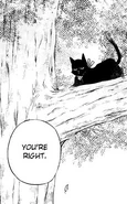 Just then, Alice notices something and points out that there's a cat (Cheshire) sitting in the tree above them, confusing Oz and frightening Gilbert. Thinking it over, Oz suggests that one of the guests at the tea party must have brought it with them, while also noting that Cheshire is making a somewhat arrogant face at them. Alice states that Cheshire looks tasty, but when Gilbert advises her not to eat Cheshire, Cheshire jumps down from the tree and scurries away. Although Oz is surprised and unnerved by Cheshire's disappearance, he's interrupted when Elliot and Leo come along.