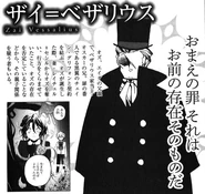 - "Of course, I was reluctant at first. But that boy- that man- gave me solid evidence that he was really Jack Vessalius... by telling me lots of things that only Jack could know. I thought that if what he said were true... his final wishes should be inherited by a member of the Vessalius Dukedom. And in doing that... I could also spare my wife from the grief of losing her child. However. I came to discover the truth... Although, that was probably a part of his plan as well. Up until now I've been a mere puppet in his hands."